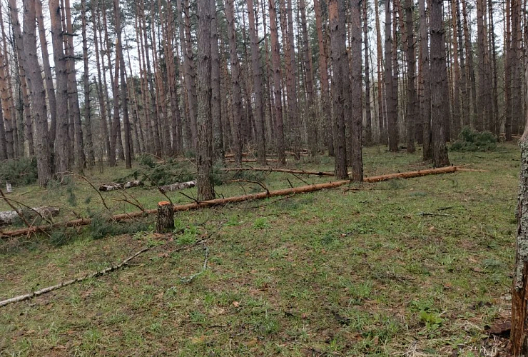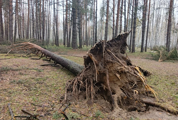 На Сегденском озере берег тоже подсыхает, однако отломившихся частей сосен, а иногда и полностью вывернутых с корнями деревьев здесь значительно больше. Судя по внешнему виду сломанных деревьев, большинство из них повреждено недавно.